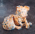1998Schaal, doorsnede 42 cm opgelegde lijnen van klei met engobe geschilderd en geglazuurd Jongen met hond en balletje.